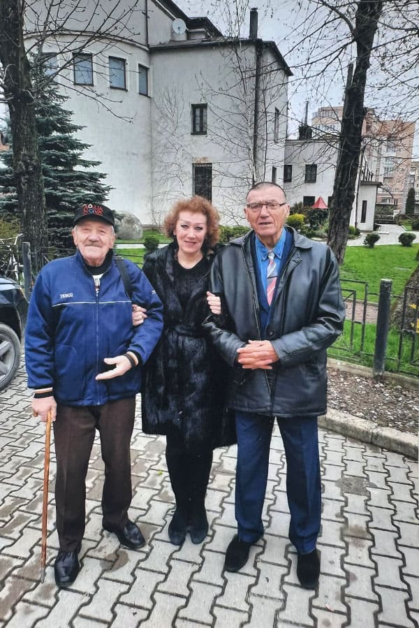 Edward Chytry, Margaryta (córka Czesława Chytrego) i Czesław Chytry. Przy kościele w Równem, 2023 r.
