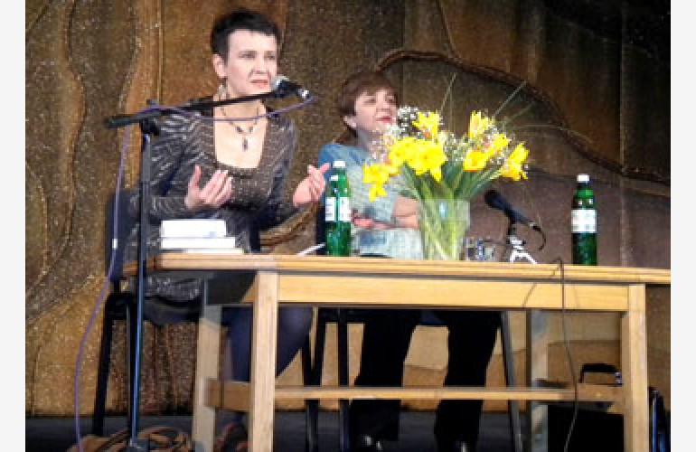 Оксана Забужко разом із літературознавцем, професором Національного університету «Києво-Могилянська академія» Вірою Агеєвою у залі Волинського академічного музично-драматичного театру імені Тараса Шевченка зустрілися із волинськими студентами та викладачами.