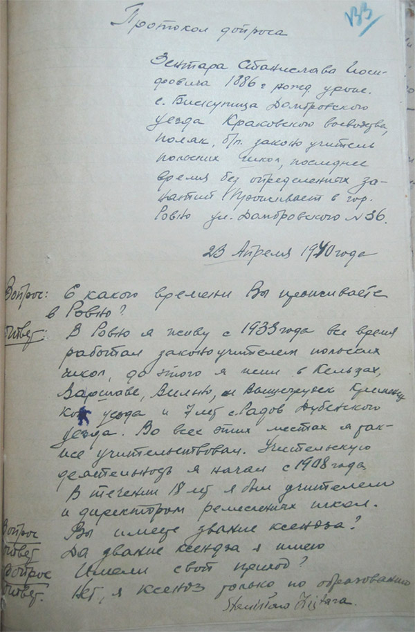 На початку листопада 1939 р. УНКВС Львова ліквідувало «Польську організацію боротьби за свободу» – одне з перших польських підпільних формувань, організоване генералом Маріаном Янушайтісом. На його базі було створено диверсійну групу, яка вела підготовку до здійснення терористичних актів на стратегічних об’єктах у момент очікуваного збройного повстання. У Рівному про наміри організації стало відомо ксьондзу Станіславу Зентарі, у якого з фальшивими документами на ім’я Анни Костянтинівни Сташевської та Тадеуша Костянтиновича Сташевського переховувалися сестра і брат генерала Маріана Янушайтіса. На допиті, проведеному 23 квітня 1940 р., Станіслав Зентара зізнався, що родичам генерала (який на той час уже перебував у радянських казематах) довелося тікати без документів, аби уникнути переслідування НКВС. Станіслав Зентара не приховував, що саме він дістав бланки та виготовив фальшиві документи для Анни й Тадеуша на дівоче прізвище їхньої матері. Від одного з осадників Креховецької осади духівник отримав понад 50 чистих бланків паспортів, котрі роздав військовослужбовцям та членам їхніх родин, які мали намір нелегально потрапити до Генерал-губернаторства.