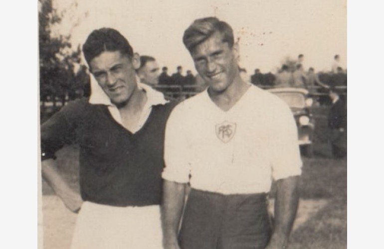 Михайло Зеленов і Тадеуш Пюршель (зліва направо). Фото з архіву Михайла Зеленова надав син гравця луцького ПСК Ярослав Зеленов.