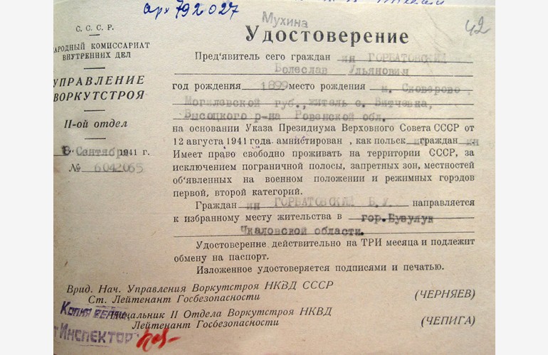 8 вересня 1941 р. його амністували як громадянина Другої Речі Посполитої згідно з Угодою Сікорського-Майського і направили на проживання до Бузулука у Чкаловській області.