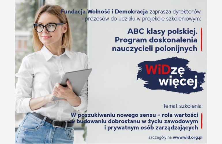 Фонд «Свобода і демократія» запрошує директорів польських шкіл і керівників полонійних освітніх організацій взяти участь в онлайн-тренінгу «У пошуках сенсу – роль цінностей для створення доброї атмосфери в професійному та приватному житті керівників».