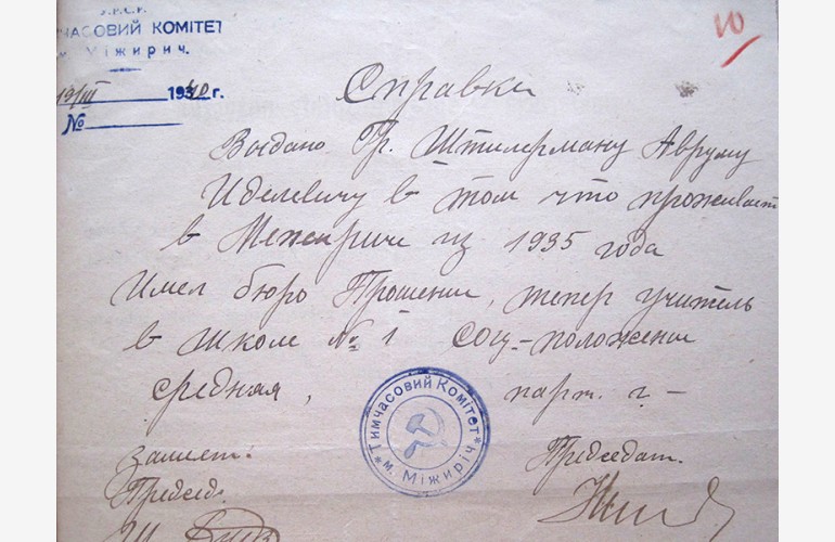 «Во время существования польского государства систематически проводил агитацию, направленную против СССР и коммунистической партии». Такий «злочин» вказано в постанові Межиріцького райвідділу НКВС про арешт Абрама Штилермана, учителя Межиріцької школи № 1.