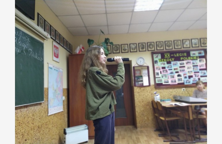 Гостею заходу була випускниця школи Ірина Білоус, яка коротко розповіла про час, коли вона вивчала тут польську мову, та похвалила нове покоління учнів за те, що вони підтримують польські традиції, представляють мистецькі програми та беруть участь у конкурсах.
