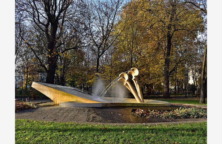Важко зберігати байдужість і прямувати в тільки собі відомому напрямку без жодного погляду, без хоч би побіжного присвячення уваги білій брилі, яка нагадує все і ні з чим не асоціюється. Влітку з м’яко окреслених форм б’ють цівки води, ніби рядки нот із відкритого фортепіано. Фонтан «Фортепіано Шопена», бо про нього йдеться, був поданий на конкурс ще в 1949 р., але реалізації дочекався лише у 2006 р.