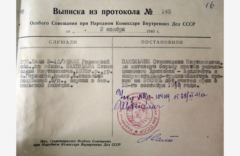 «На протяжении длительного периода времени проводил борьбу против интересов рабочих и крестьян», – таким чином у постанові про притягнення до кримінальної відповідальності від 19 грудня 1939 р. окреслено злочини Станіслава Пахольчика, якому присвячено наш черговий нарис.