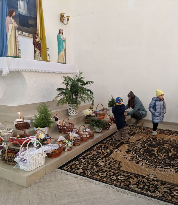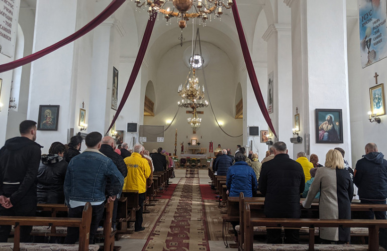 Дубенські католики під час пасхального тридення молилися за мир, згадуючи всіх тих, хто постраждав від війни. До храму вони приходили щодня напередодні Великодня.