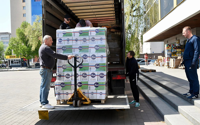 До Луцька привезли медикаменти, засоби особистої гігієни, одяг, постільну білизну, продукти харчування тривалого зберігання, намети, спальні мішки, дитяче харчування, інвалідні візки та корм для тварин.
