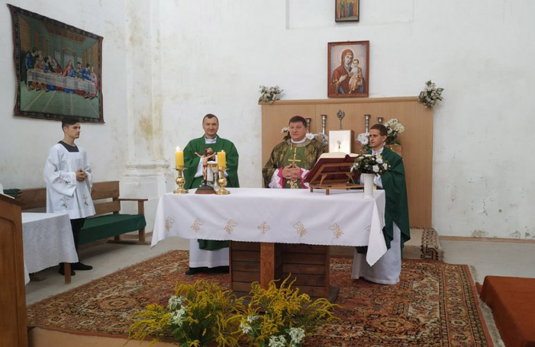 Месу разом із єпископом Віталієм Скомаровським співслужили попередній душпастир, отець Роман Власюк і новопризначений, отець Ярослав Рудий. Присутні дякували Богу за Його щедроти, допомогу та дар віри. Молилися за мир в Україні. Також пом’янули завчасу спочилого отця Анджея Квічалю – багаторічного духівника римо-католицької громади в Любешеві.