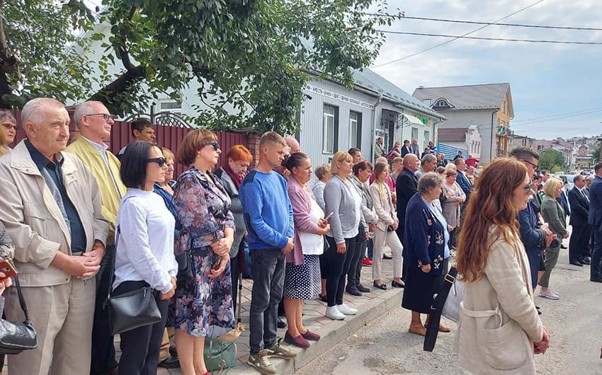 Єпископ-помічник Львівської архідієцезії Римо-католицької церкви Едуард Кава, ксьондз-декан і військовий капелан Мар’ян Попеляр та владика Тернопільсько-Теребовлянської єпархії ПЦУ Павло Кравчук здійснили чин освячення скверу та пам’ятного знаку. Після цього гості поклали квіти до пам’ятного знаку.