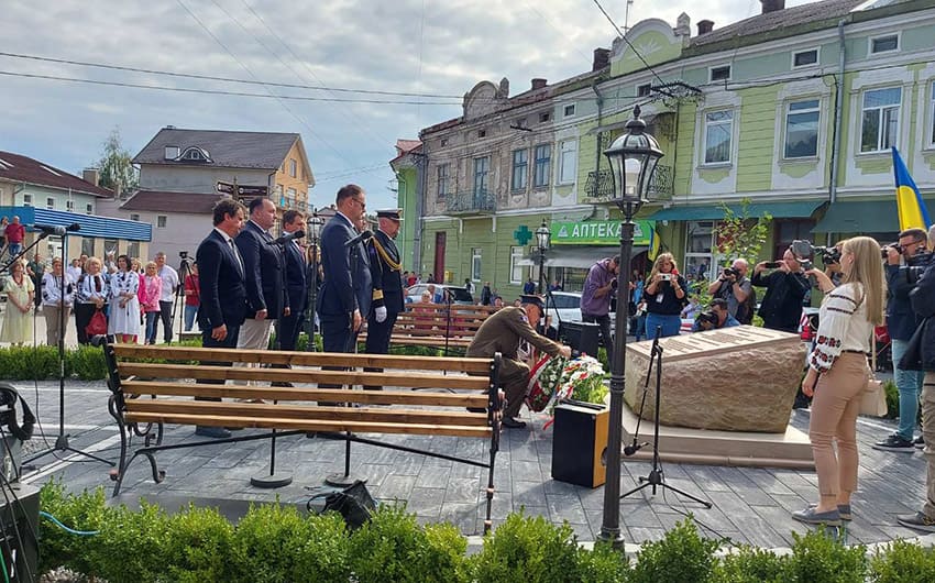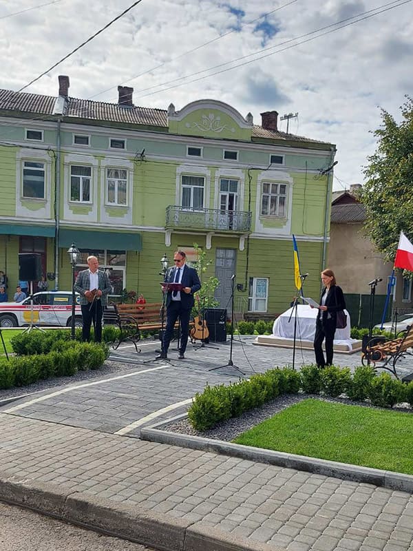 Голова громадського комітету побудови скверу Яцек-Адріан Матусяк розповів, що знав Леха Качинського особисто з 1970-х рр. та мав честь працювати разом із ним. Він також прочитав подяку від Ярослава Качинського – брата Леха Качинського, очільника партії «Право і справедливість». А тоді разом із міським головою Чорткова Володимиром Шматьком відкрив пам’ятник, присвячений президентському подружжю.
