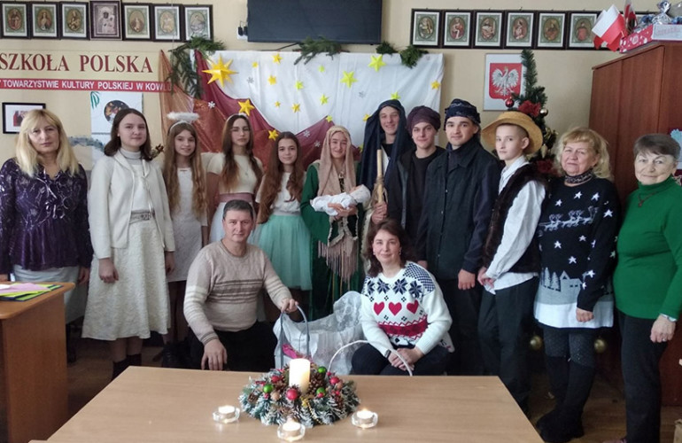 18 грудня в польській школі при Товаристві польської культури в Ковелі зібралися учні, члени організації та батьки, щоб, як і щороку, подивитися історію народження Ісуса Христа. Юні артисти під керівництвом Ірини Герки й Тетяни Дворської підготували вертеп, незважаючи на перебої зі світлом.
