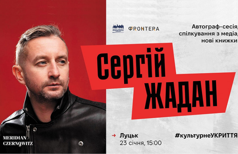 Волинських читачів запрошують на зустріч із харківським письменником, музикантом і волонтером Сергієм Жаданом. На автограф-сесію з митцем лучан і гостей міста запрошують міжнародна літературна корпорація «Meridian Czernowitz» та команда міжнародного літературного фестивалю «Фронтера».