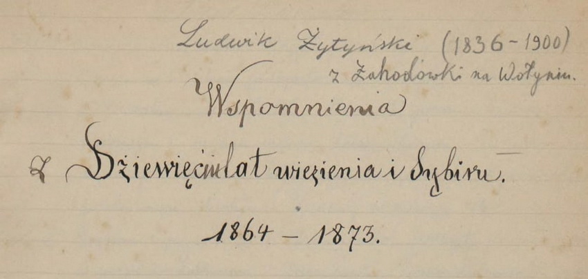 Перша сторінка щоденника «Спогади з дев’яти років ув’язнення та Сибіру. 1864–1873»