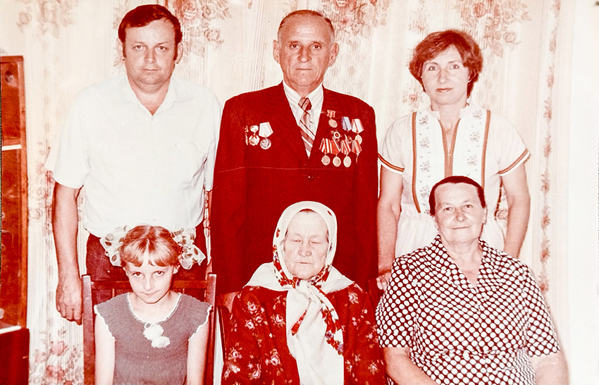 Мечислав Лабенський із батьком Броніславом та дружиною Надією (стоять), дочка Олена, бабуся Мечислава Поліна Йосипівна і мама Мечислава Юзефа Станіславівна (сидять). Середина 1980-х рр.