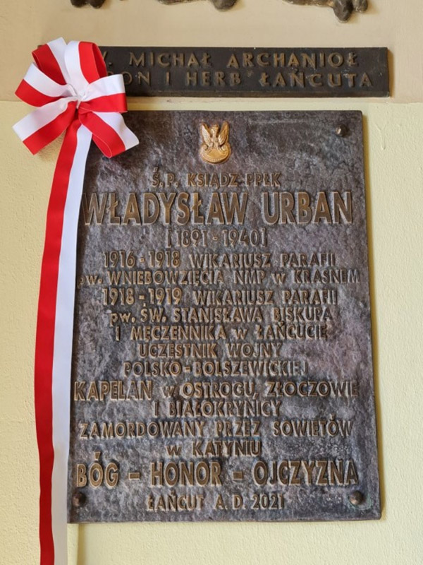 Меморіальна таблиця пам’яті Владислава Урбана в костелі в Ланьцуті. Фото з порталу lancut.org
