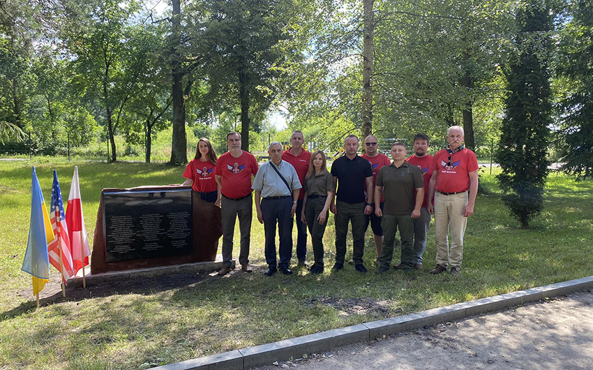 Камінь із меморіальною дошкою, відкритий 8 липня цього року, встановили на місці, яким опікується Поліський лісовий офіс державного підприємства «Ліси України». «Він покликаний символізувати пам’ять про тих, хто загинув у війні проти загарбників, – сказав Яцек Щот. – Це також символ співпраці між трьома народами: польським, американським та українським. Тут загинули поляк і американець, а українці дали нам зрозуміти, що хотіли би вшанувати тих, хто боровся за свободу цих земель від радянської окупації. Спільними зусиллями ми реалізували цю ініціативу».
