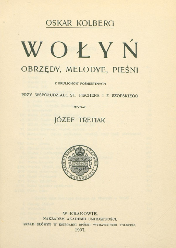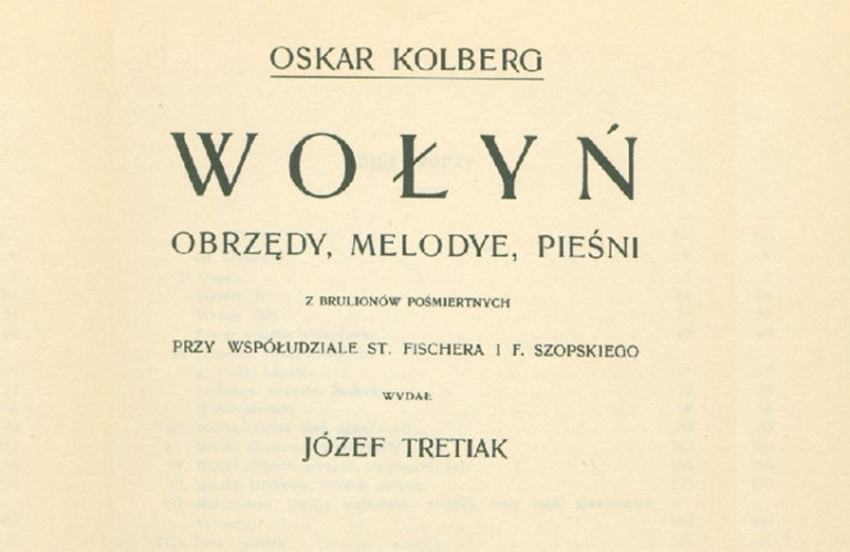 «Багатство поезії та музики волинського народу тут проявляється у всій повноті», – написав Юзеф Третяк, видавець матеріалів Оскара Кольберга, присвячених Волині. Том 36 «Волинь. Обряди, мелодії, пісні» вийшов у 1907 р. у Кракові, через 17 років після смерті видатного польського етнографа.