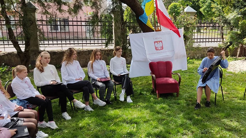 На подвір’ї польської школи, що діє при Товаристві польської культури Здолбунівщини, відбулися урочистості з нагоди 233-ї річниці Конституції 3 травня.
