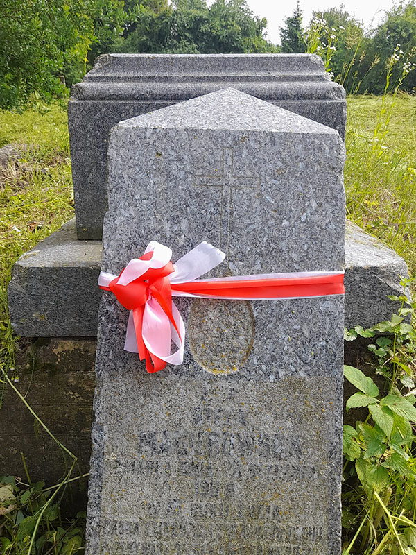 Учасники толоки покосили, поприбирали та повісили на вцілілих надгробках біло-червоні стрічки. Прикрасили ними також хрест, який височить над цвинтарем.