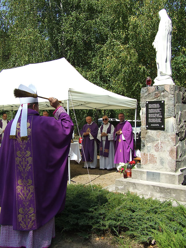 Після завершення меси єпископ освятив пам’ятну таблицю, встановлену на постаменті фігури Пресвятої Діви Марії біля вівтаря. На таблиці викарбувані слова з вірша «Саджаючи троянди» Северина Гощинського, написані ще в 1831 р.: