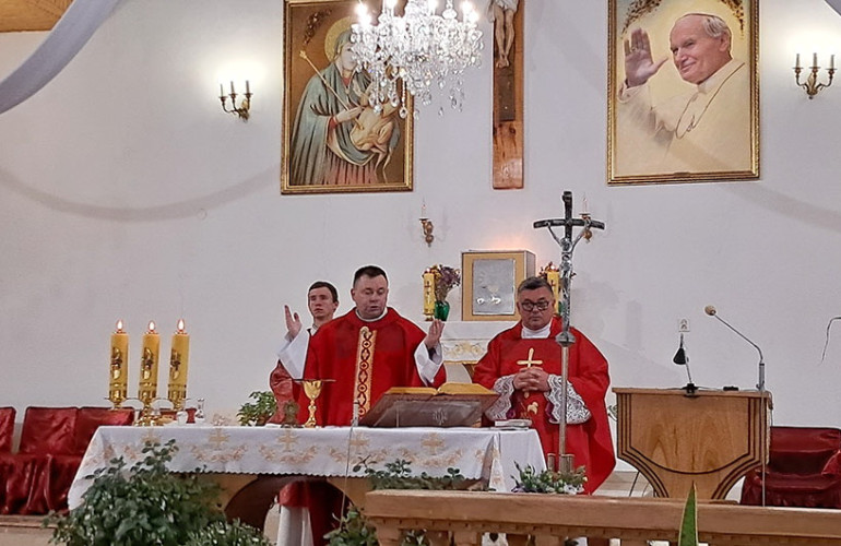 Меса розпочалася величними звуками органної музики. Орган у костелі освятили навесні цього року. На запрошення настоятеля храму, отця-каноніка Гжегожа Оважаного, літургію відправив отець Василь Плахотка, парох парафії Успіння Пресвятої Діви Марії у Вараші.