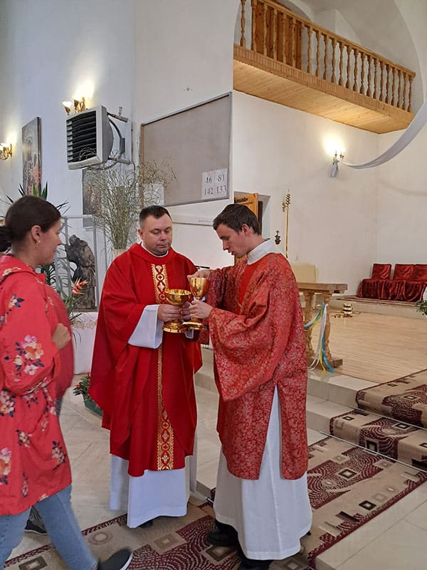У месі брав участь диякон Петро Гордієнко, який проходить практику у храмі Святого Йоана Непомука. Він закінчив Вищу духовну семінарію Святого Йосифа у Львові. Раніше він проходив практику в Луцьку та Рівному.