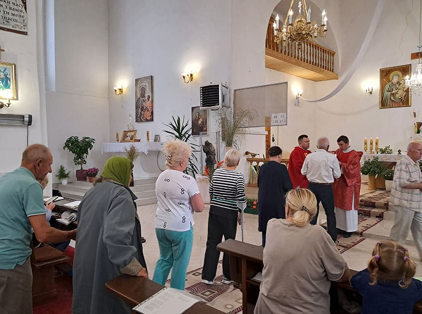 Після богослужіння присутні отримали гуманітарну допомогу, яку до храму Святого Йоана Непомука передали благодійники з Польщі.