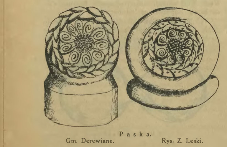 * Примітка Зигмунта Леського: Доказом того, що орнаментика, яку виконують на солодкій випічці (наприклад, на пасках), не позбавлена глибокого символічного значення, може бути нотатка, записана мною в Антоніни Яцені із села Дерев’яне (гміна Клевань Луцького повіту), що цих шишок не їдять, їх зберігають та опісля дають коровам, коли отеляться.