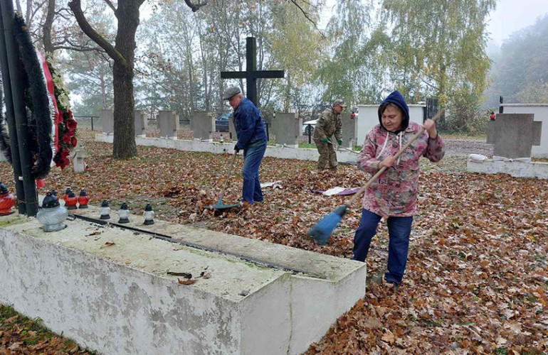 Цьогоріч напередодні Дня Усіх Святих роботи не бракувало. Представники польської організації прибрали опале листя, відремонтували старі дерев’яні хрести, освіжили написи на могилах. Перед роботою помолилися, а після впорядкування запалили лампадки і віддали шану всім, хто похоронений у цьому місці.