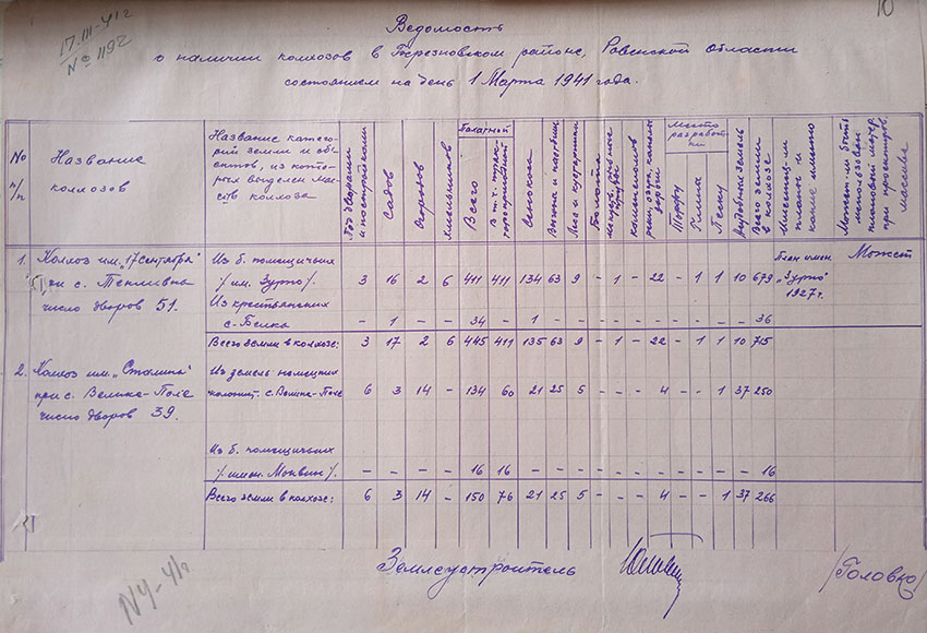 Список колгоспів у Березнівському районі Рівненської області станом на 1 березня 1941 р. Джерело: Державний архів Рівненської області