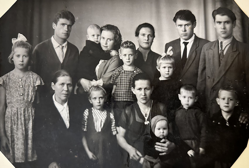 Уся родина. Знизу зліва бабуся Ольга, Людмила Машлай, тітка Марія з дітьми. Зверху справа наліво дядько Юрій, тато Мирослав, мама Валентина, дядько Іван із дружиною і дітьми. 1962–1963 рр.