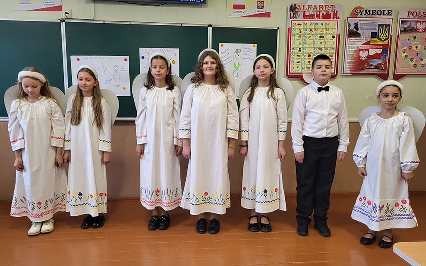 До педагогів завітали учні 3–5 класів Рокинівського ліцею, щоб привітати їх із прийдешніми святами та заспівати колядки. Вчителі були приємно вражені рівнем володіння дітьми польською мовою.