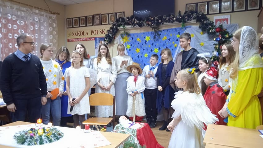 У польській школі в Ковелі звичай виставляти вертеп існує вже багато років. Цього року знову зустрілися учні, їхні батьки та члени товариства.