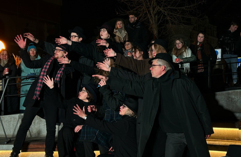 24 січня на глядачів, які зібралися в луцькому сквері «Зерно», чекав справжній перформанс від акторів театру «Гармидер». Дата для показу театрального дійства була обрана невипадково: саме цього дня у 2002 р. у Луцьку помер поет, перекладач і художник Кость Шишко, а в 1941 р. у Кременці народився письменник, перекладач і літературознавець Юрко Покальчук.