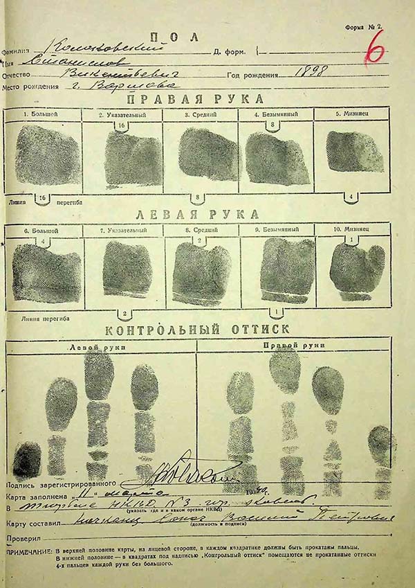 Картка з відбитками пальців Станіслава Колаковського