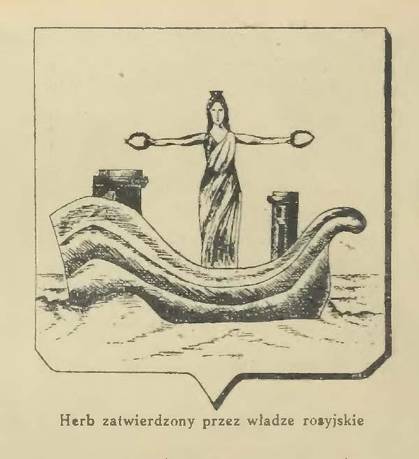 У міському архіві є лише фотографія герба, затвердженого волинським губернатором у Житомирі 12 квітня 1907 р. (№ 1086). Він представляє жінку, що стоїть на човні, який пливе на тлі двох замкових веж неоднакової висоти й ширини. Жінка тримає у витягнутих руках вінки й має корону на голові. Рисунок герба дуже стилізований. Саме такого герба хотіла тодішня міська рада. Проте його так і не розмістили на печатці, він є лише на міських проштемпльованих марках.