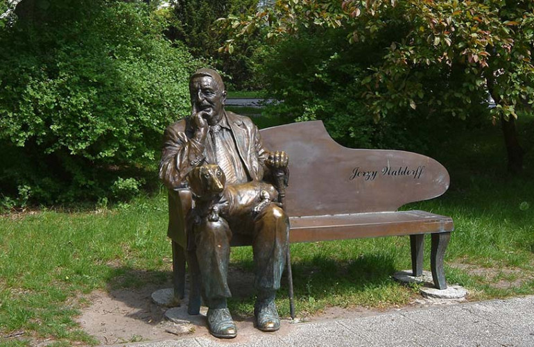На головному фото: Лавочка Єжи Вальдорфа у Слупську. Автор: Henryk Bielamowicz. CC BY-SA 4.0