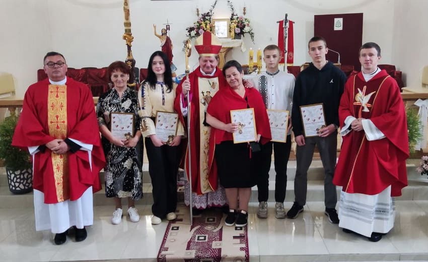 Миропомазники подякували єпископу Віталію Скомаровському за уділення таїнства, а отцю Петру Гордієнку – за підготовку до прийняття дарів Святого Духа.