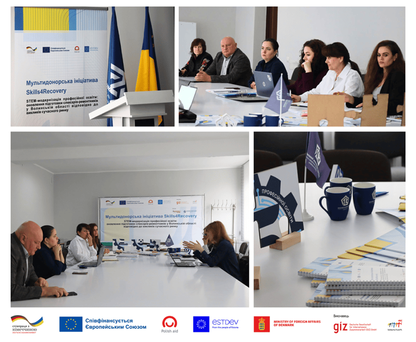 Ініціативу Skills4Recovery «Підтримка модернізації професійно-технічної освіти в Україні – Професійне навчання – 2025» підтримують Європейський Союз, Німеччина, Польща, Естонія і Данія. Вона спрямована на розвиток професійної освіти, перепідготовку кадрів і зміцнення потенціалу громад для економічного відновлення України.