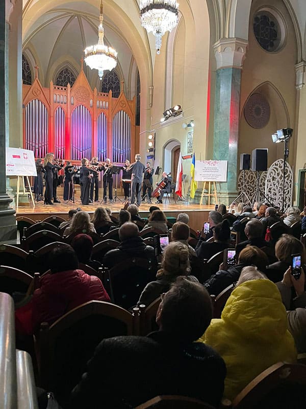 Під час ювілейного концерту лунали класична музика, оперний спів, польські пісні у виконанні вокальних колективів. Присутні мали змогу насолодитися творами геніальних польських композиторів: Станіслава Монюшка та Фридерика Шопена.