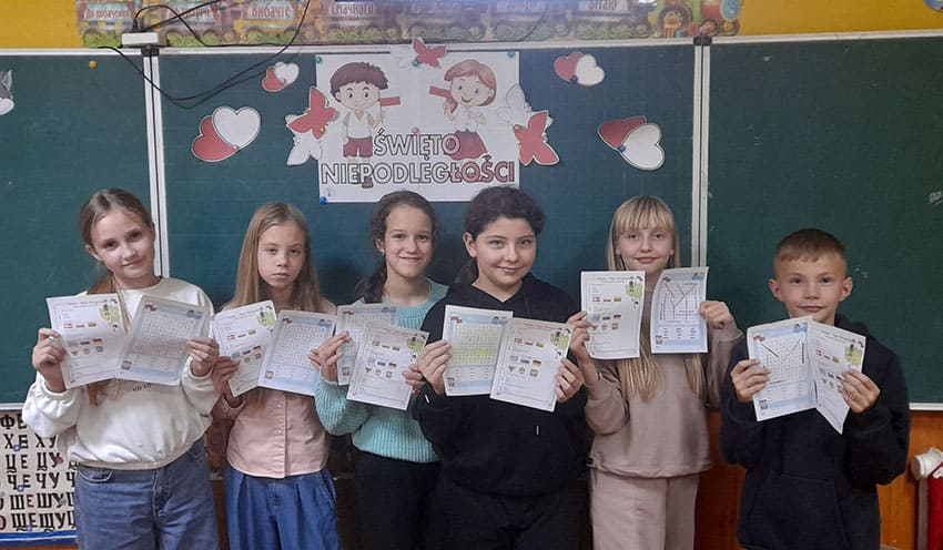 Одним із найцікавіших занять Тижня польської мови було створення лепбуків – кольорових папок, повних інформації, кишеньок, малюнків, слів та цікавих фактів. Завдяки лепбукам учні не тільки закріплювали матеріал, але й мали нагоду проявити власну креативність. А за допомогою гри в мовне доміно вони розвивали вміння співпрацювати.