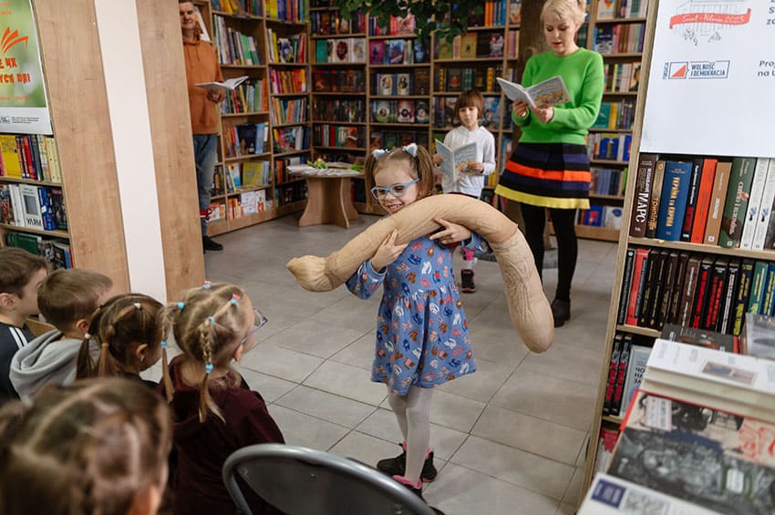 На завершення кожен маленький читач отримав у подарунок книгу Ренати Пьонтковської «В голові не вкладається», видану двома мовами – польською та українською. Також дітлахи отримали яблука і желейні черв’ячки як відображення змісту оповідання «Мешканець».
