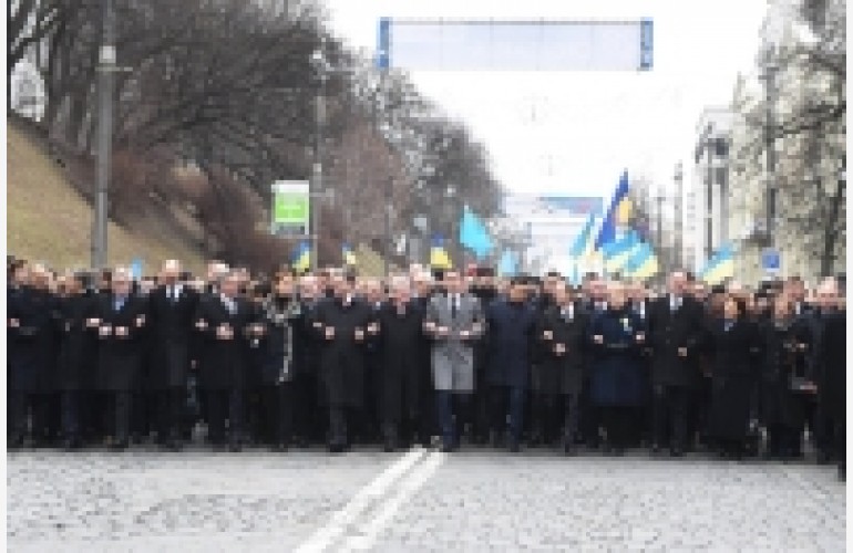 Учасники маршу пройшли місцями, де минулої зими між міліцією та демонстрантами точилися бої, в яких загинуло понад 100 осіб. Згодом вони взяли участь у молитві на Майдані Незалежності.