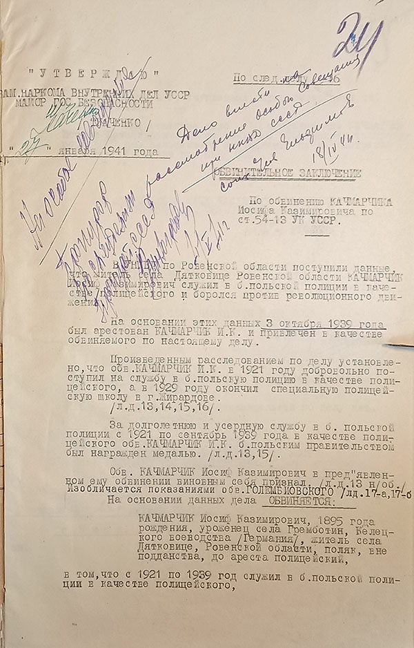 P. S.: Materiały rubryki «Ocaleni od zapomnienia» zostały opracowane przez doktora nauk historycznych Tetianę Samsoniuk na podstawie akt radzieckich organów ścigania przechowywanych w Państwowym Archiwum Obwodu Rówieńskiego, w zbiorach Zarządu KGB Ukraińskiej SRR w Obwodzie Rówieńskim (1919–1957) oraz w Archiwum Zarządu Służby Bezpieczeństwa Ukrainy. Będziemy wdzięczni, jeżeli odezwą się Czytelnicy, krewni lub bliscy bohaterów naszej rubryki, którzy posiadają o nich dodatkowe informacje.