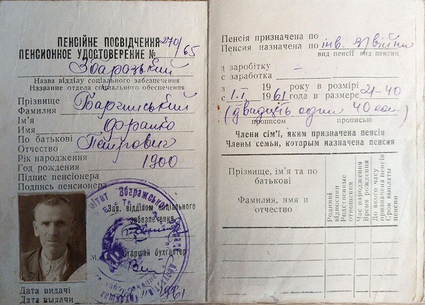 «Jeszcze w czasie wojny babcia Franciszka spotykała się z pewnym Polakiem. Prosił, by wyjechała z nim do Polski, ale rodzice jej na to nie pozwolili. Po powrocie pradziadka z wojny Barczyńscy mieli opuścić Ukrainę (9 września 1944 r. rząd Ukraińskiej SRR i Polski Komitet Wyzwolenia Narodowego podpisały Układ dotyczący ewakuacji obywateli polskich z terytorium Ukraińskiej SRR i ludności ukraińskiej z terytorium Polski – aut.). Kiedy zebrali już rzeczy i jechali na dworzec kolejowy w Zbarażu, sąsiedzi zaczęli prosić pradziadka, by został, ponieważ był dobrym gospodarzem i weterynarzem. Powiedziano mu, że i tak po pewnym czasie będzie musiał wrócić, bo wszystkie przesiedlenia są tymczasowe. Tak pradziadek z rodziną postanowili zostać w domu» – mówi moja rozmówczyni. Kiedy Barczyńscy wrócili do Załuża, w ich domu już zakwaterowano przesiedleńców z Polski. Mieszkali z nimi przez jakiś czas pod jednym dachem.