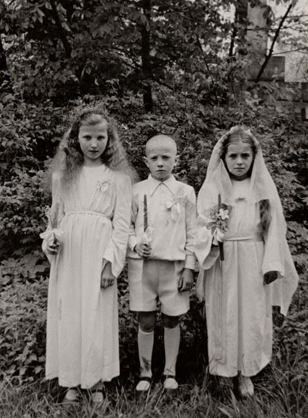 Zdjęcia pochodzą z archiwum rodzinnego Witalija Dmytrenki. Na głównym zdjęciu: Pierwsza Komunia Witalija Dmytrenki. W pobliżu kaplicy na cmentarzu katolickim. 1955 r.
