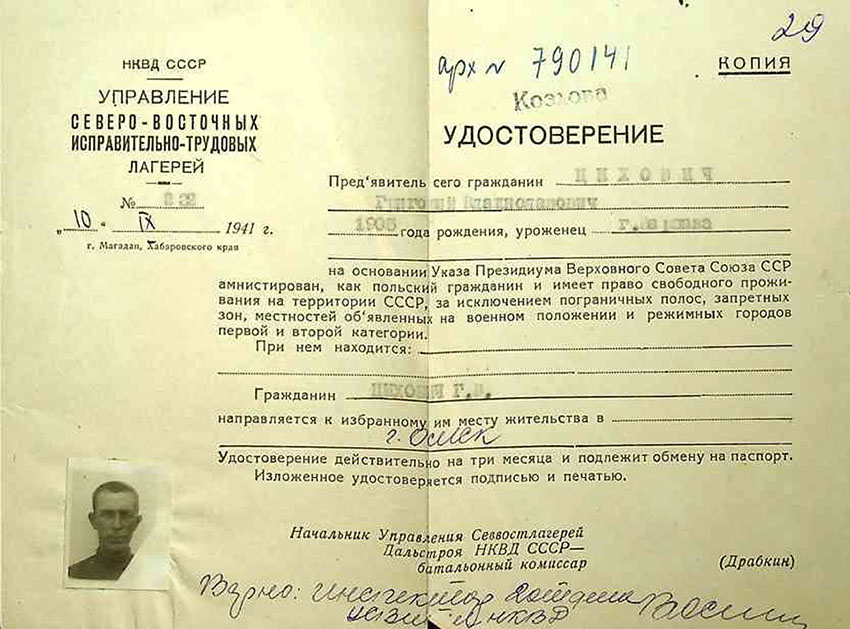 Ostatnim dokumentem w tej sprawie jest zaświadczenie wydane 10 września 1941 r. przez Zarząd Północno-Wschodnich Poprawczych Obozów Pracy (Siewwostłag) w mieście Magadan, Kraj Chabarowski. Dowiadujemy się z niego, że Grzegorz Cichowicz po amnestii pojechał do Omska. Jego dalsze losy nie są nam znane.