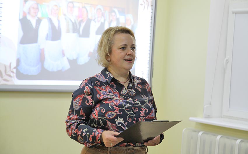 Natalia Ciołyk, która prowadziła spotkanie, opowiedziała o twórczej drodze zespołu. Inicjatorem jego powstania był Piotr Miłogrodzki, wówczas kierownik chóru «Wołyń», obecnie czynny członek TKP im. Tadeusza Kościuszki i kierownik chóru «Wołyńskie Słowiki». Pierwsza grupa wokalna składała się z siedmiu członkiń i nosiła nazwę «Gospodynie». Przez ponad dziesięć lat kierowała nią dyrygentka Tamara Granowska. Od 2015 r. do dziś kierownikiem chóru jest Ałła Rajter. Obecnie «Wołyńskim Paniom» akompaniuje wykładowca Wołyńskiej Państwowej Wyższej Szkoły Kultury i Sztuki im. Igora Strawińskiego, bajanista Roman Nekoz.