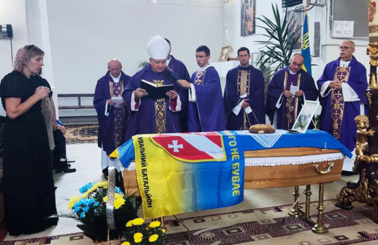 Nabożeństwo pogrzebowe w kościele odprawił bp Witalij Skomarowski wspólnie z księżmi diecezji łuckiej Kościoła Katolickiego w Ukrainie.